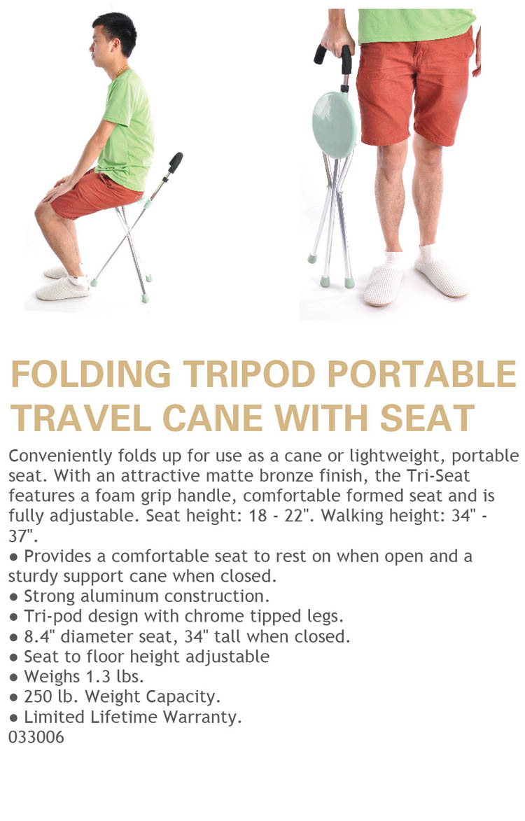 Folding Tripod Portable Travel Cane with Seat