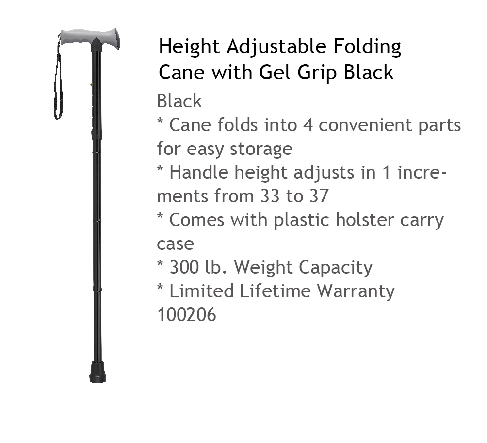 Height Adjustable Folding Cane with Gel Grip Black