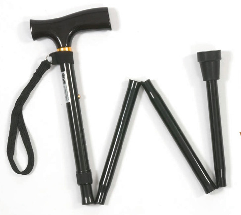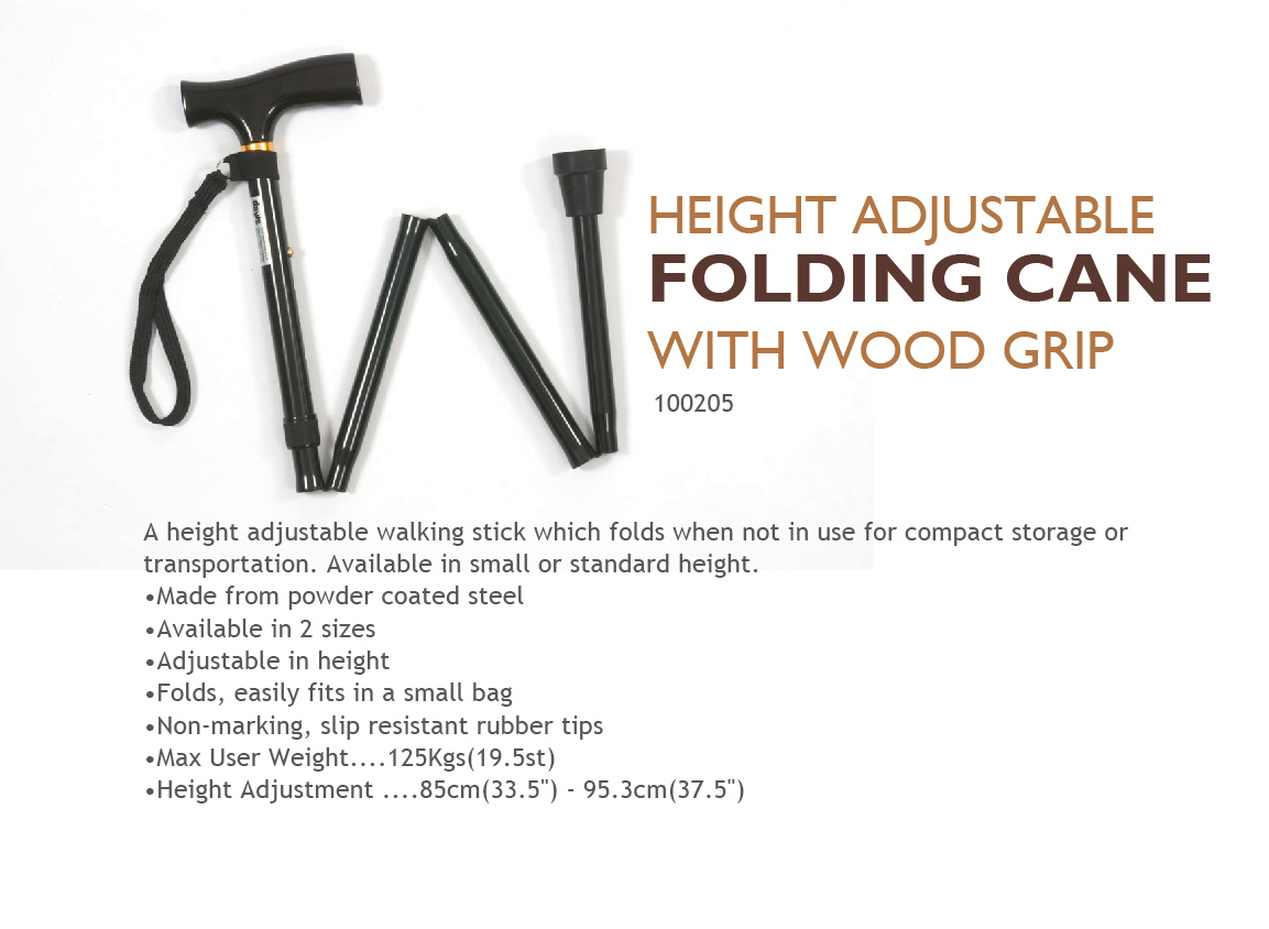 Height Adjustable Folding Cane With Wood Grip